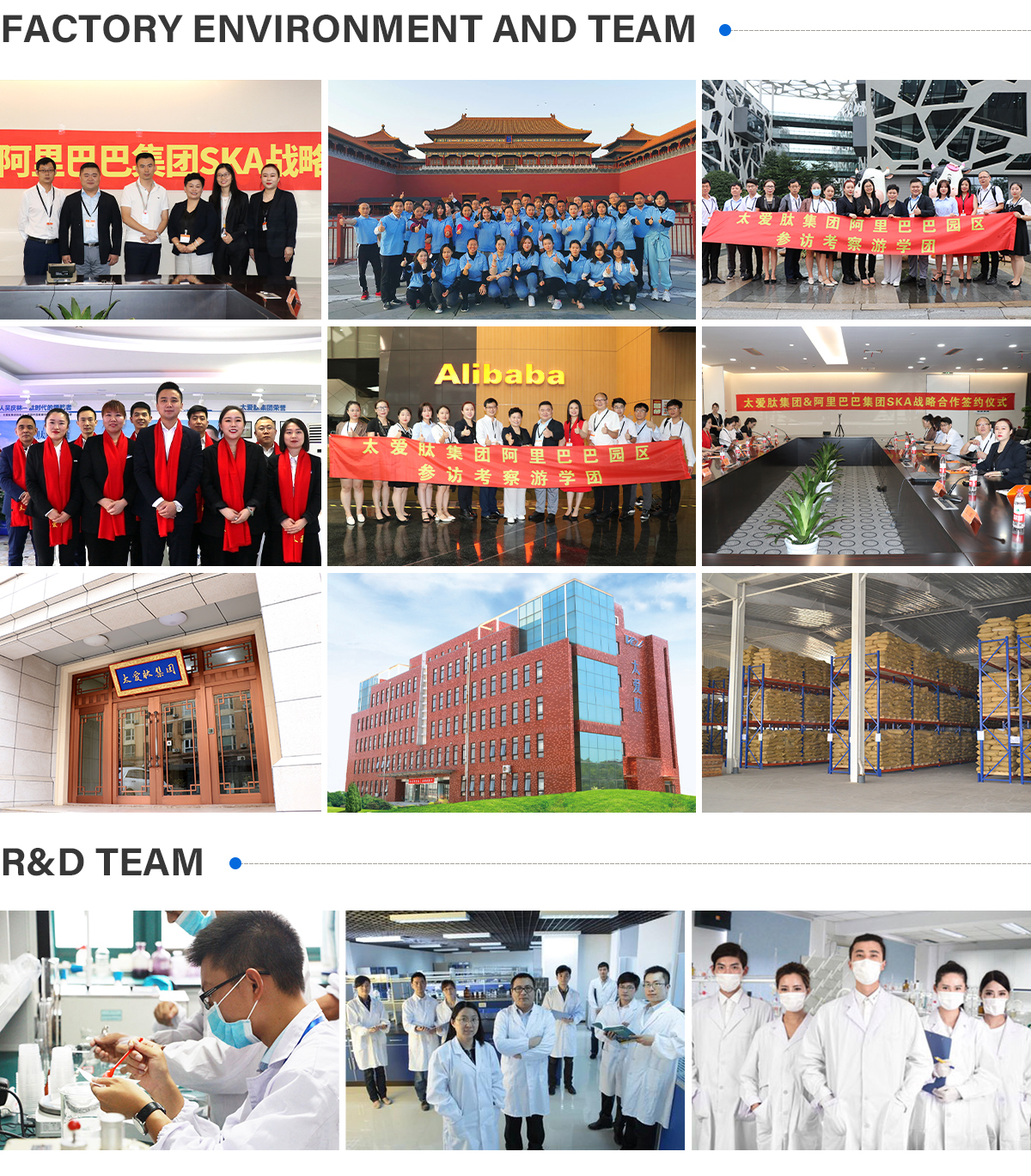 Over the years, Taiai Peptide has conducted in-depth cooperation with many scientific research institutions, universities and hospitals, as well as Ren Yandong, Zhang Li, Lu Tao, Yang Yanjun and other well-known experts and scholars in the industry. In 2021, we will cooperate with the School of Food Science of Jiangnan University to jointly establish a joint research and development center for peptide substances. Through the cooperation and complementation of research and development technology, we will continuously improve the transformation of Taiai peptide scientific research results.